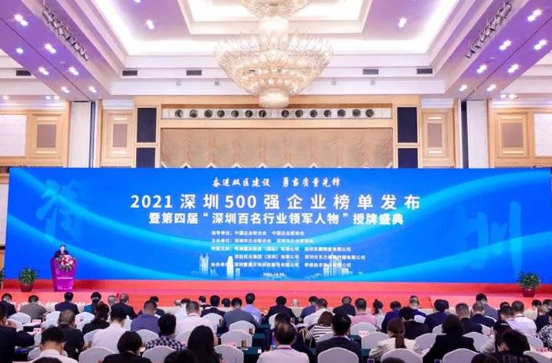 10月29日,“奮進雙區建設 勇當質量先鋒”2021深圳500強企業榜單發布暨第四屆“深圳百名行業領軍人物”授牌盛典在深圳五洲賓館舉辦。