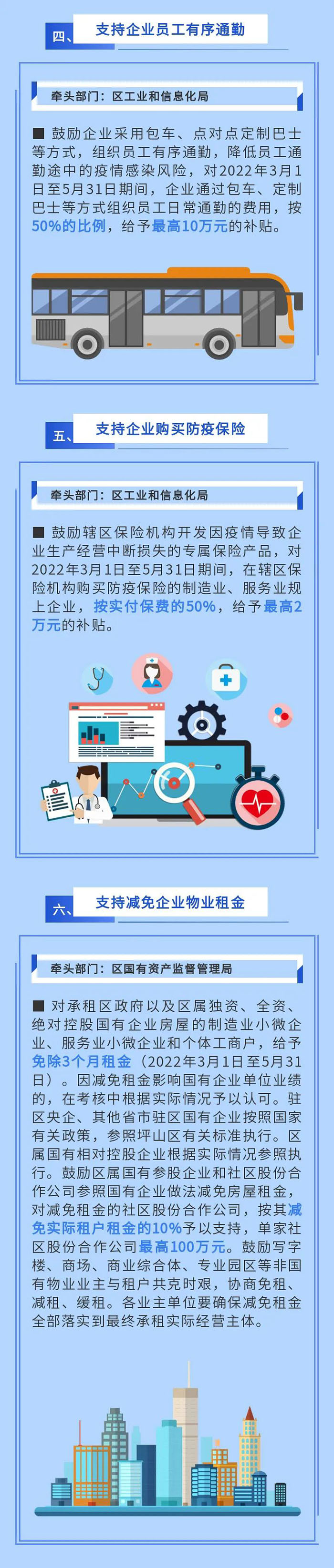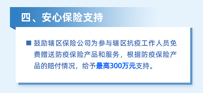 實(shí)施防疫保險(xiǎn)補(bǔ)貼。對(duì)2022年3月1日至5月31日期間,購(gòu)買(mǎi)防疫保險(xiǎn)產(chǎn)品和服務(wù)的企業(yè),按照實(shí)付保費(fèi)的50%予以支持,單家企業(yè)最高5萬(wàn)元。(牽頭單位:區(qū)金融工作局)
