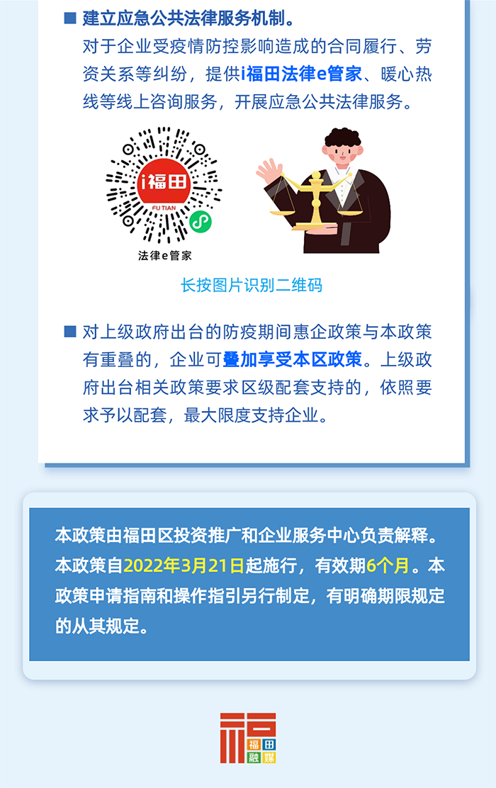 開(kāi)展專(zhuān)項(xiàng)法律援助。建立應(yīng)急公共法律服務(wù)機(jī)制,對(duì)于企業(yè)受疫情防控影響造成的合同履行、勞資關(guān)系等糾紛,設(shè)立專(zhuān)線提供應(yīng)急公共法律咨詢(xún)服務(wù)。(牽頭單位:區(qū)司法局)